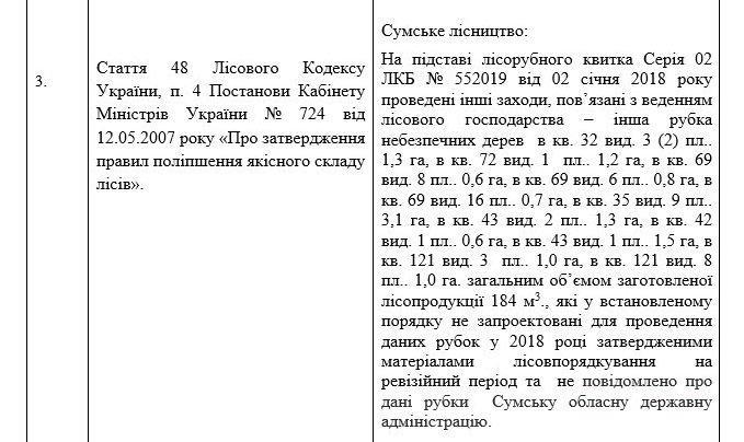 Фрагмент акту перевірки ДП «Сумське ЛГ»