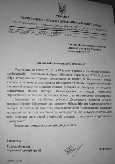 На Закарпатті, можливо, не чули, та у 2016 році Віктор Яковець став переможцем конкурсу на заміщення вакантної посади начальника Чернівецького обласного управління лісового та мисливського господарства. Громадські активісти звинувачували Яківця у купівлі крісла начальника ОУЛМГ та готувались до мітингу у день його призначення. Тодішній голова Чернівецької ОДА Олександр Фищук під тиском громадськості не погодив кандидатуру Яківця на пост головного лісівника Буковини.
