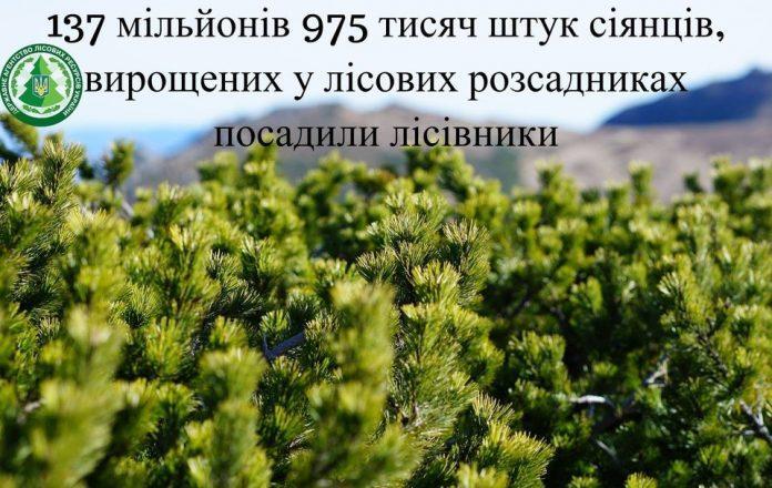 Лісові господарства України станом на 3 листопада провели роботи зі створення лісових культур на площі 24300 гектарів, таким чином уже перевиконавши план на 4,4%. Посадили 137 мільйонів 975 тисяч штук сіянців, вирощених у лісових розсадниках лісовими культурницями.