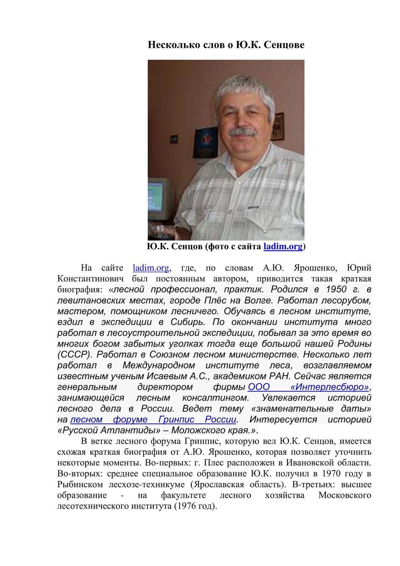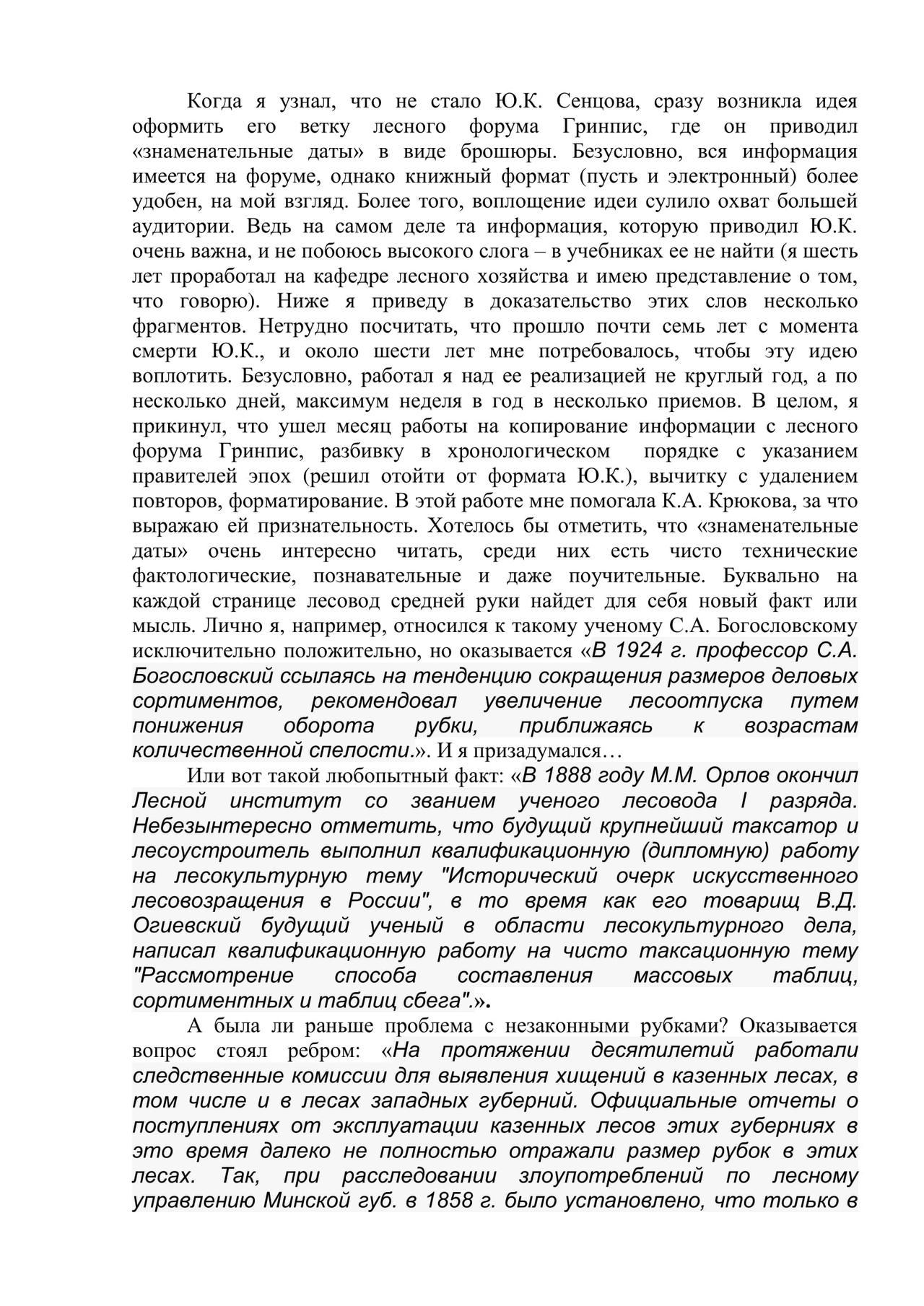 “Знаменательные даты” лесного хозяйства Ю.К.Сенцова