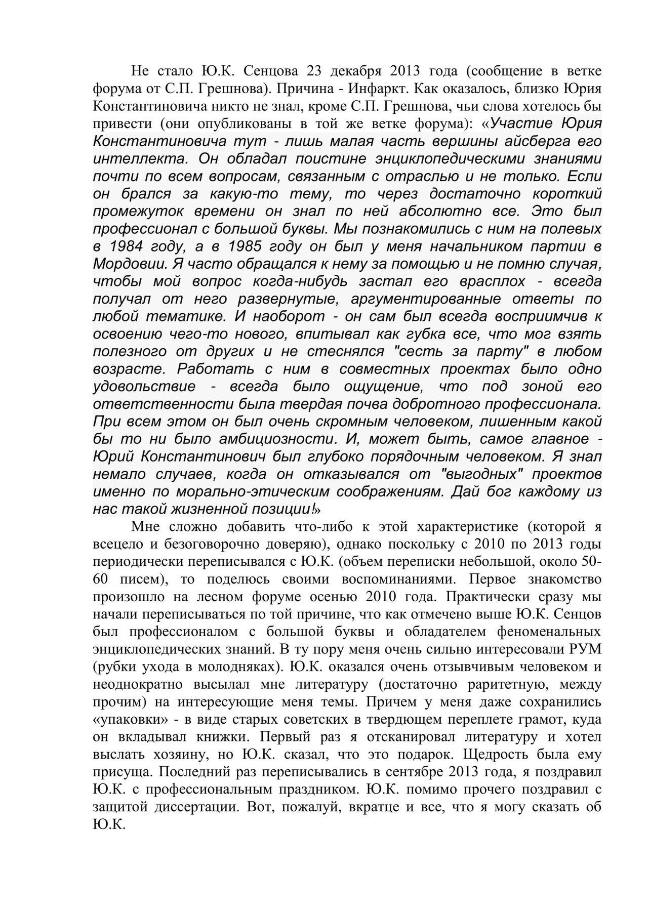 Уважаемым посетителям форума для ознакомления предлагается брошюра “Знаменательные даты лесного хозяйства Ю.К. Сенцова”. Юрий Константинович был уважаемым человеком и отличным профессионалом. На протяжении многих лет вел рубрику “Знаменательные даты” на Лесном форуме Гринпис. По большому счету данная брошюра является мини-энциклопедией истории лесного хозяйства. Так получается, что в ближайшее время ожидается очередная волна реформ отрасли, которых было в прошлом несколько десятков. Важно понимать, что вне зависимости от того, что бы ни придумали наши законодатели, это в той или иной степени уже было в истории отечественного лесного хозяйства. Чтобы это понять достаточно полистать брошюру. Было бы неплохо, если бы люди, ответственные за грядущие реформы, ознакомились с этой архиважной информацией.