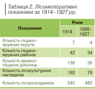 Після встановлення радянської влади порівняно з дореволюційним періодом різко скоротилася чисельність лісомеліораторів, про що свідчать дані таблиці 2