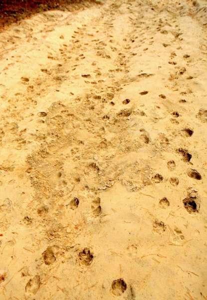 А вот так истоптан волками песок на противопожарной полосе. Впечатляет?
