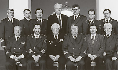 Декани та їхні заступники різних років, зліва направо – сидять: доц. П.І. Герасименко, проф. В.М. Маурер, доц. Г.В. Дубінін, доц. В.М. Портной, проф. А.А. Строчинський, доц. В.Є. Свириденко; стоять: доц. С.М. Дударець, доц. В.М. Малюга, доц. Б.І. Новак, доц. О.В. Поляков, доц. О.Г. Бабіч, доц. С.Б. Ковалевський, проф. В.Ю. Юхновський, 1999 р.