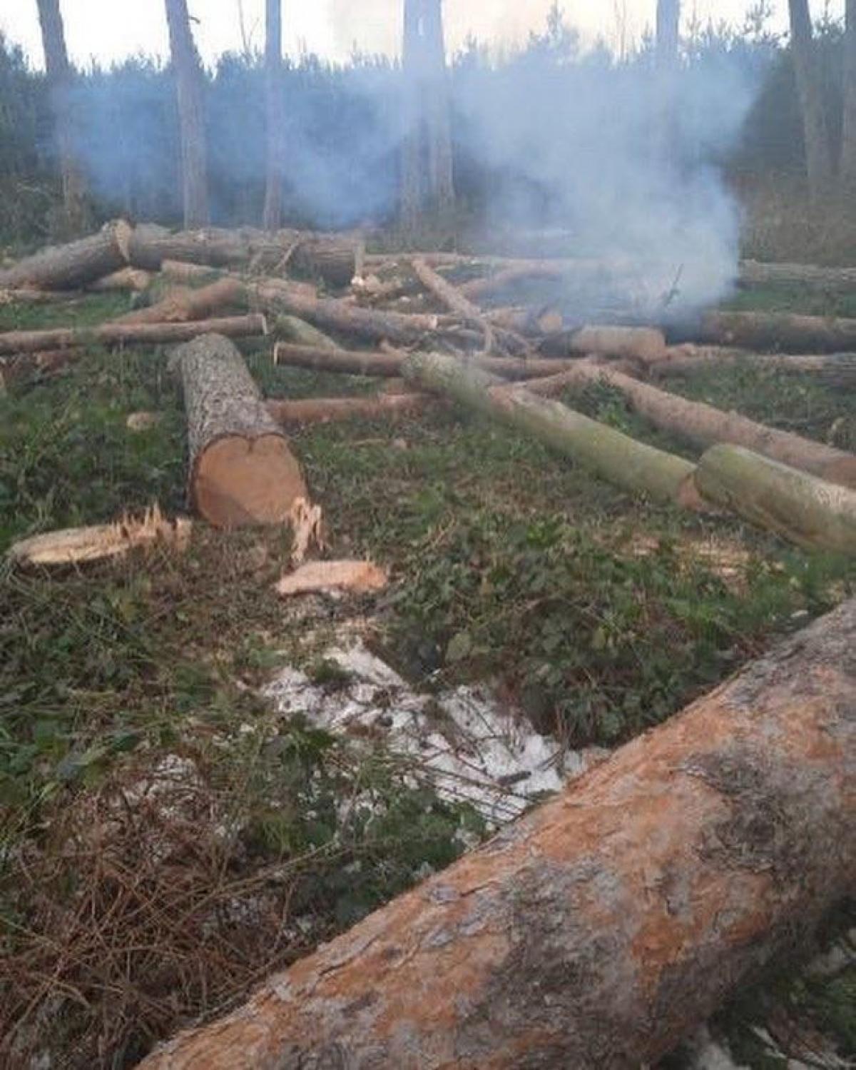 Зі світлин видно, що зрубали в лісовому масиві близько двох десятків здорових дерев.