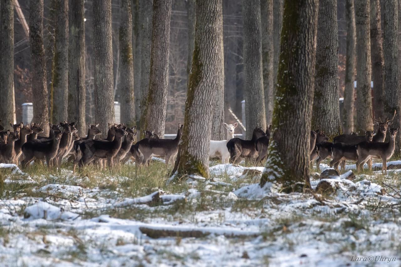 Лариса серед стада помітила навіть олениху альбіноса.
