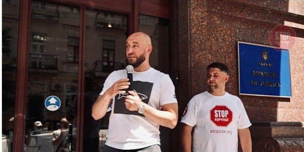 Засновник ГО “Стоп корупції” Роман Бочкала тоді публічно відхрестився від затриманих активістів, назвавши їх “шахраями, які прикриваються ім’ям організації”, і цьому можна було б повірити, якби не один нюанс: “Стоп корупції” дійсно в цей час проводила акції протесту під стінами згаданої держустанови, а імена затриманих активістів фігурували у новинах на сайті організації, де вони були підписані як члени “Стоп корупції”.