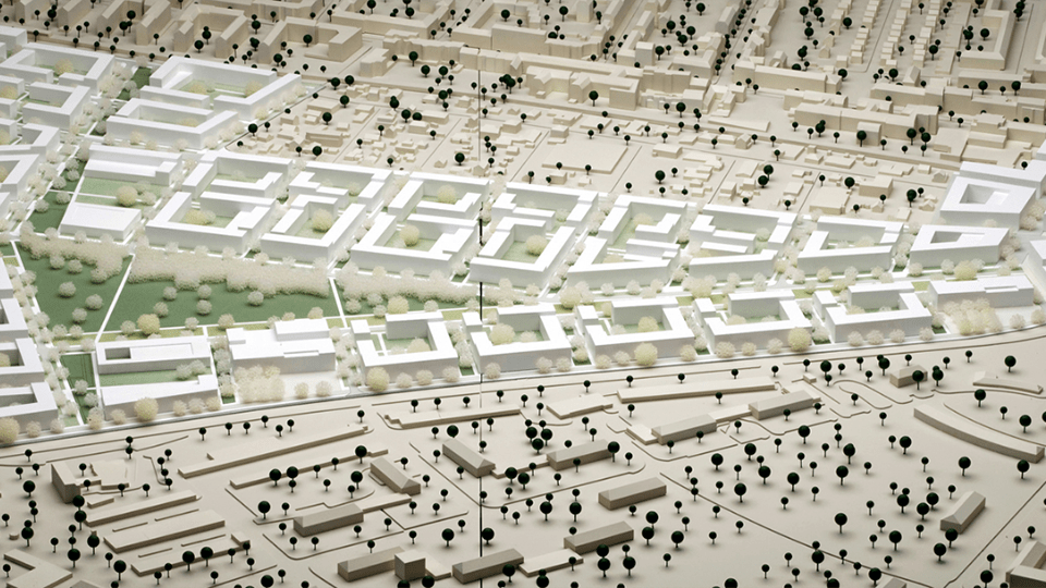 Примеры масштабного деревянного строительства: Принц-Ойген-Парк в Мюнхене (вверху) и план квартала Шумахера в Берлине.