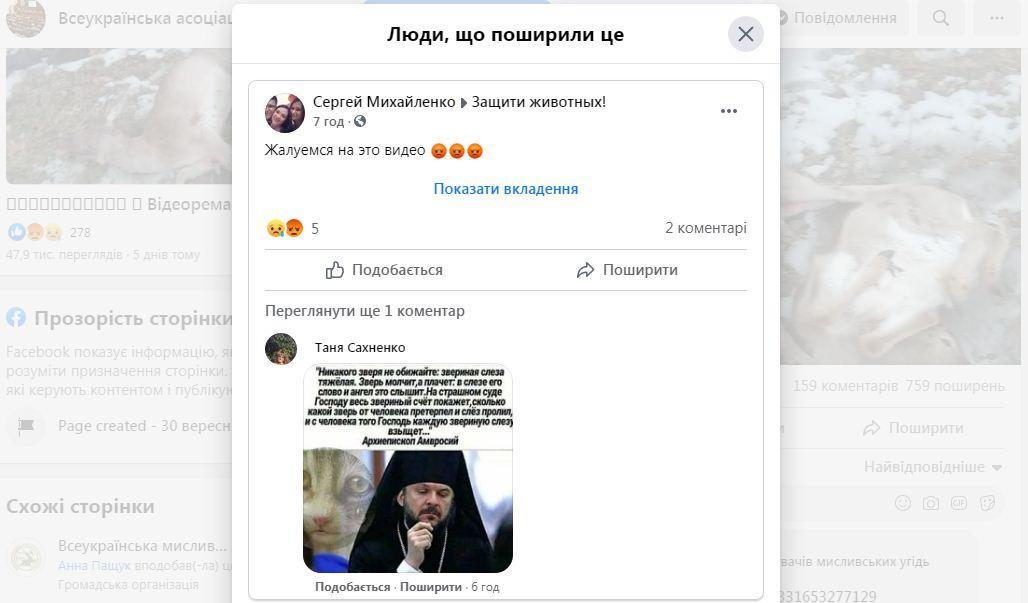 Варто зазначити, що відео першою опублікувала на своїй сторінці Всеукраїнська асоціація мисливців та користувачів мисливських угідь. На їхній сторінці воно зібрало майже триста реакцій, 159 коментарів та 759 поширень. Цікаво, що деякі дописувачі, які поширюють відео, закликають скаржитись на нього. Як думаєте, чому?