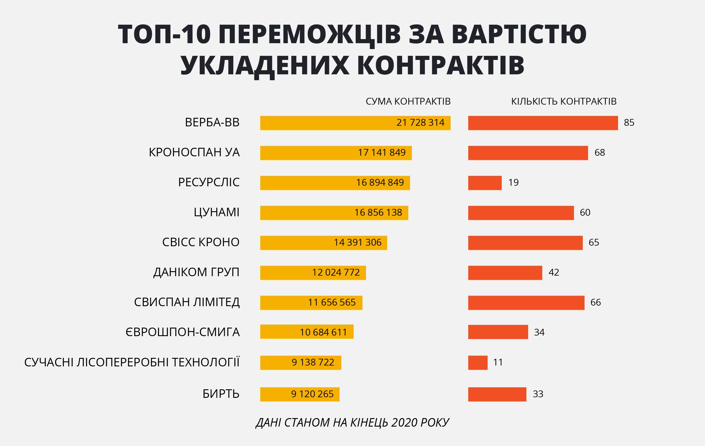 Всього в експерименті взяли участь 259 продавців − це в основному державні лісгоспи, лісомисливські господарства, лісогосподарські агропромислові підприємства. Значно менше − комунальних лісопаркових господарств, національних парків. За даними ProZorro.sale, в 2020 році оголосили понад 22 тисячі аукціонів, із яких лише 15% стали успішними, а з цьогорічними даними − 23%.