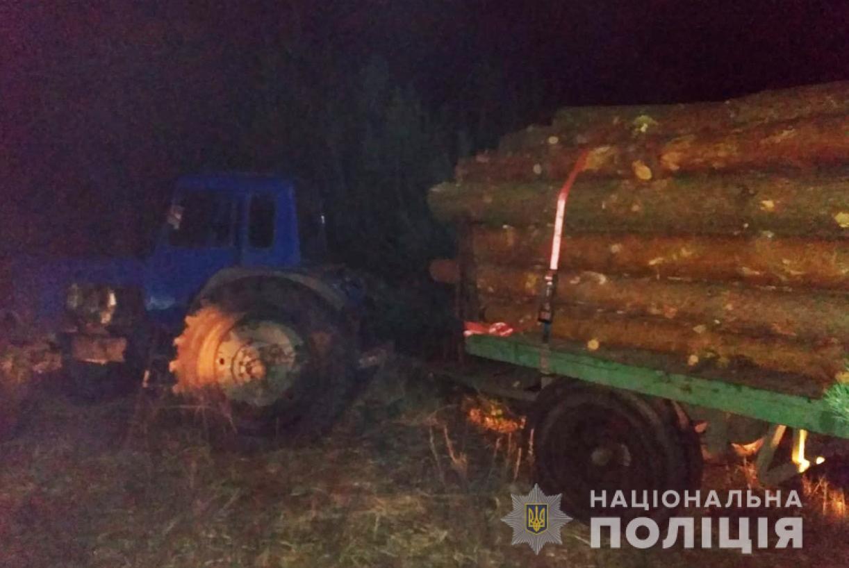 Окрім цього, під час огляду місцевості поліцейські виявили трактор «МТЗ-80», на причепі якого було 50 колод деревини.