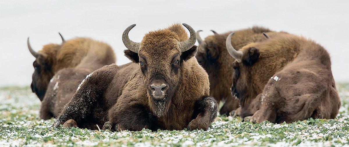 – Зараз наші зубри підходять до годівниць вдень та вночі. Інколи й декілька разів на добу. Дуже цікаво за цим спостерігати. Першою обережно йде вожак стада. Вона уважно все обдивляється, нюхає повітря, оглядає кожен клаптик лісу, уважно слухає – чи немає десь стороннього шурхоту чи запаху небезпеки. Вона ж і першою їсть, – розповідає Микола Голуб. – Поки зубриха не почне їсти, жоден із членів стада не рветься поперед її голову. А згодом до годівниць і солонців йде решта тварин. Справжня субординація. Поївши, зубри не йдуть далеко, інколи розгрібають сніг і лежать на заростях моху. Там їм не холодно. Згодом знову харчуються. Вони добре знають наш «графік», коли приїде автомобіль чи кінна підвода зі смаколиками. Коли харчуються, то дозволяють нашим працівникам підійти ближче до себе.