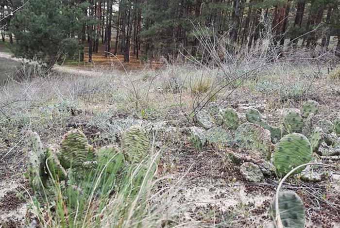 На знімку: мексиканські кактуси оселилися в сосновому лісі під Олешками.