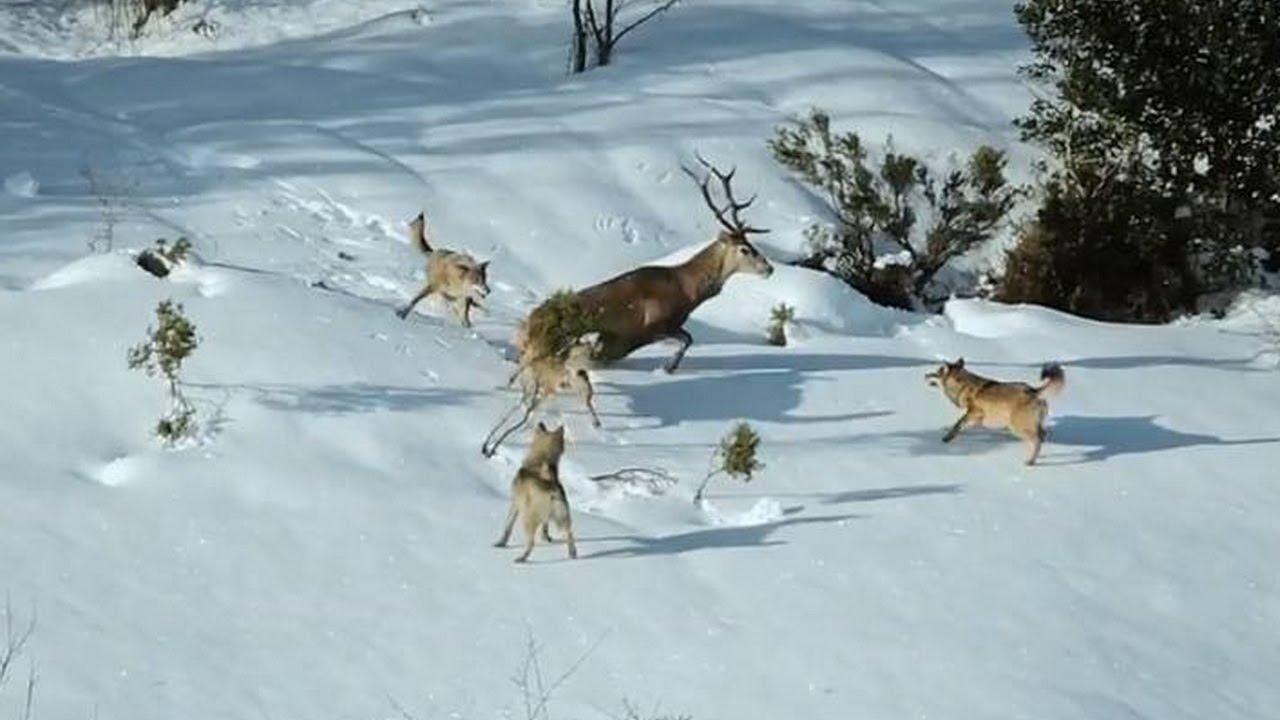 Серые волки против оленей, лосей, зайцев, собак, бизонов и даже росомахи! Это настоящие лесные хищники, которые очень опасны! Ведь серый или обыкновенный волк может достигать веса 90 и более кг! Но даже средний волк весом в 40-50 кг очень опасен, ведь это настоящая машина для преследования! Волк очень вынослив и способен часами бежать без остановки вперед. Он может разгоняться до 65 км/ч и этого хватает чтобы схватить добычу. Кроме того волк обладает широкими лапами, которые не перехолаждаются в снегу и имеют небольшие перепонки! Благодаря этому хищники не проваливаются в снег и догоняют более тяжелых копытных. А огромный волчий нос способен учуять добычу в радиусе 3км вокруг.