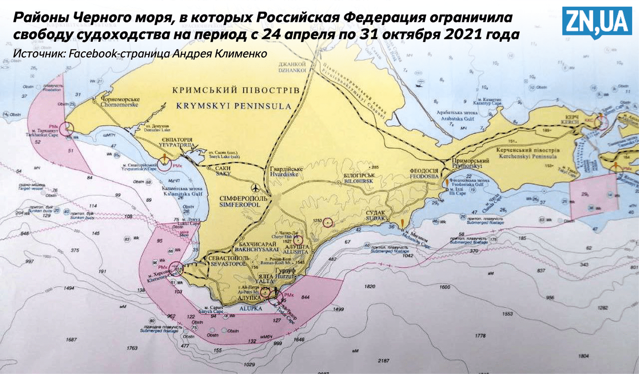 На днях Россия усилила свое военное присутствие в Черном море, перебросив десантные и артиллерийские корабли Каспийской флотилии. Одновременно Москва объявила о закрытии с 24 апреля по 31 октября трех участков черноморской акватории для иностранных военных кораблей и государственных судов из-за проведения там военных учений. Этот запрет пока не касается коммерческого судоходства, но распространяется на украинские военные корабли и суда портового флота (в основном это буксиры).
