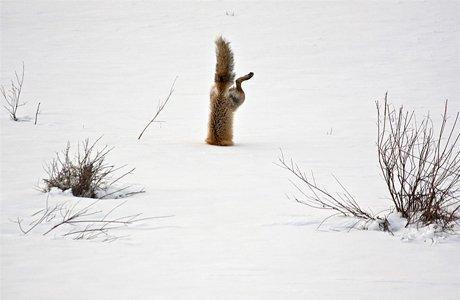 7. ПОЧЕСНА ВІДЗНАКА: На фото – червона лисиця, яка, маючи надзвичайний слух, дістається до миші, що сховалася на глибині понад 60 сантиметрів під замерзлим снігом (автор – Майкл Істман)