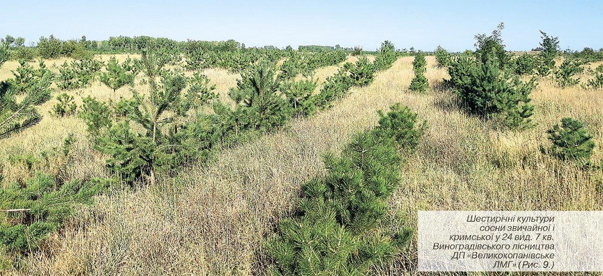 Рис. 4. Сосна звичайна, посаджена механізованим способом