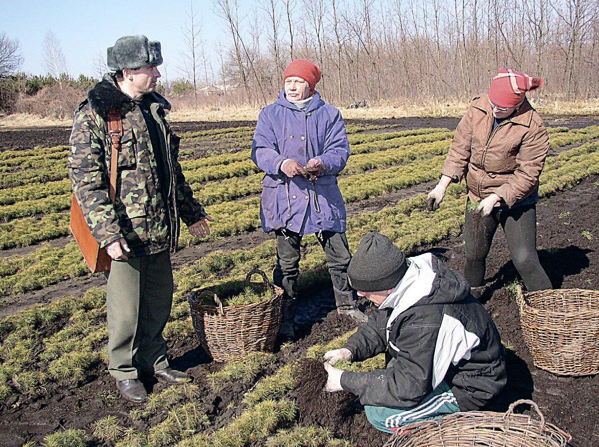 Всі садіння лісів проводяться власним садивним матеріалом, вирощеним у розсаднику із насіння, яке заготовляють самостійно і доводять до відповідних кондицій. Розсадників у лісгоспі чотири гектари, де 0,8 гектара відведено під теплиці. Скажімо, торік було вирощено три мільйони високоякісних сіянців сосни звичайної і дуба, які використовуватимуться під час цьогорічної весняної лісосадивної кампанії. Крім того, щорічно на 4–8 гектарах, відповідно до потреб, вирощують деревця сосни кримської для новорічних ялинок