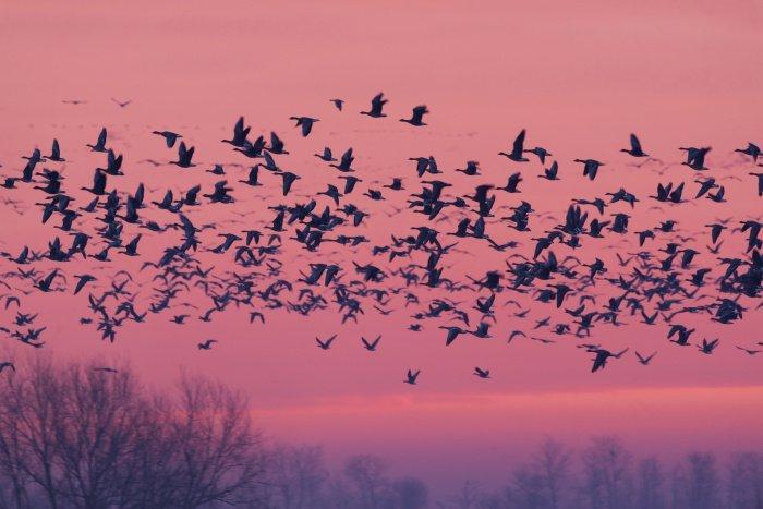 Для понимания того, какую структуру имеют гусиные стаи в период весенней миграции, обратимся к работам по социальной организации гусеообразных и стратегии их весенних миграций. Итак. Обратимся к статье В.В. Иваницкого (биологический факультет МГУ им. М.В. Ломоносова) «Социальная организация гусеобразных (anseriformes): базовые принципы и основные направления эволюции».