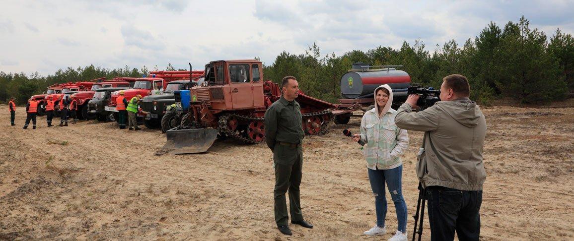 За сценарієм навчання черговий Городищенського лісництва виявив пожежу з камер відеоспостереження ДП «Остерський військовий лісгосп». Він повідомив про це директора підприємства Володимира Брайка, котрий відразу прийняв рішення про залучення до гасіння пожежі допоміжних засобів пожежогасіння лісгоспу.