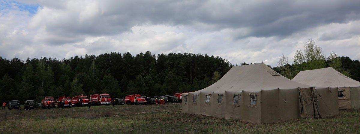 Керівник штабу, начальник відділу лісового господарства Вадим Фесюн приймає рішення виставити пости чергування по периметру пожежі. Облаштували і наметове містечко для ночівлі вогнеборців на безпечній відстані.