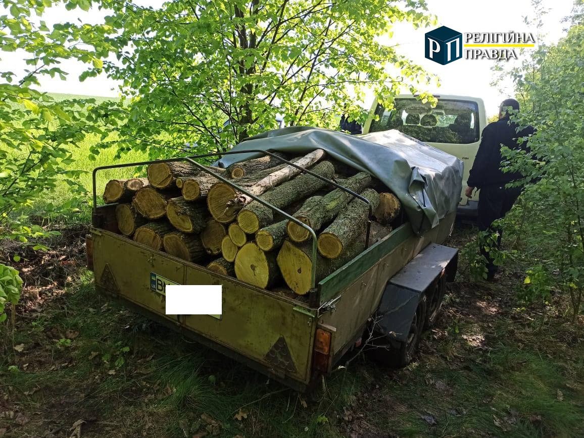 Спиляний ліс він перевозив на авто “Вольксваген Т4” (номер ВХ7002 АР) з причепом. У момент затримання він вже був навантажений спилом лісу.