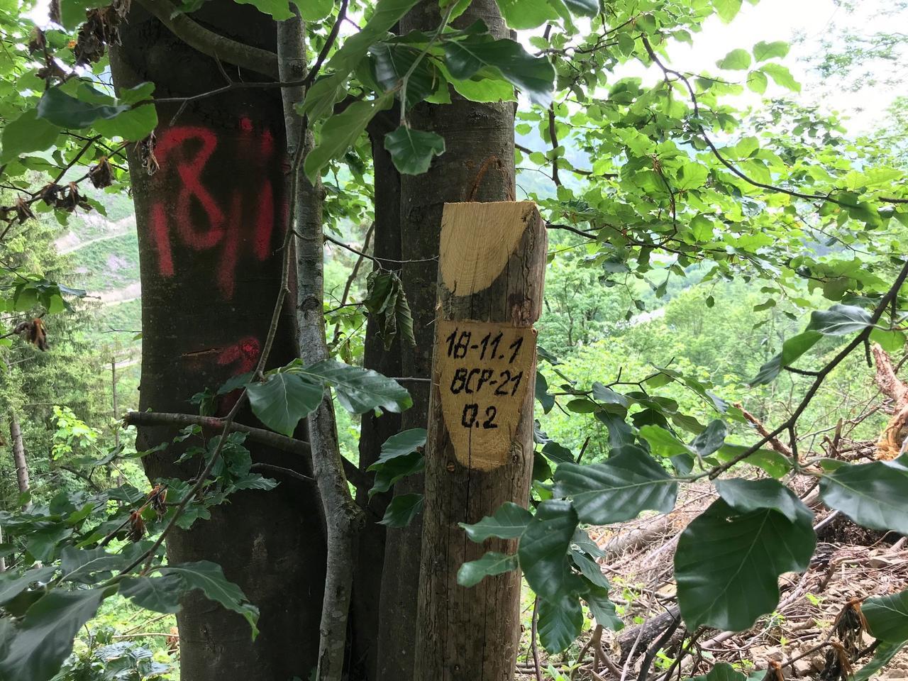 Ми вирішили самостійно перевірити одну з ділянок в Славському лісовому господарстві. На ділянці, яка передувала потрібній нам, вже провели масштабну рубку. Але за стопцем, який розмежовує ці дві ділянки, лежало хіба кілька дерев. Загалом в цьому місці (тут закінчувалась лісова дорога) кілька зрізів виглядали свіжими, лежала свіжа стружка і пахло як на лісопилці.