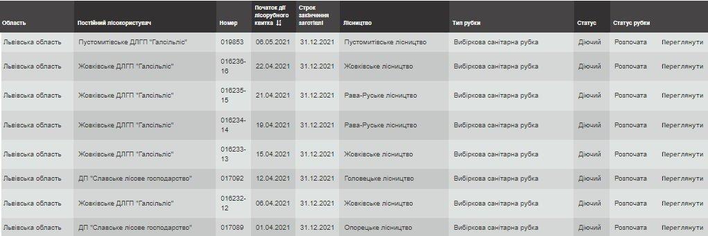За даними Лісогосподарського інноваційно-аналітичного центру (далі – ЛІАЦ), цього року лише у Львівській області видано 18 таких лісорубних квитків, ще один в Тернопільській і два в Закарпатській, в уже згаданому Хустському лісгоспі.