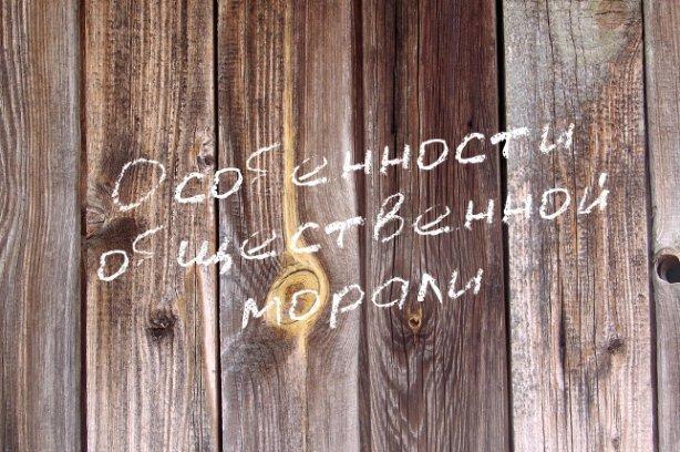 Разговоры о "морали", да еще и общественной, вызывают у нас целую палитру ярких нескрываемых эмоций. От гомерического хохота до печальноизвестного желания потянуться за пистолетом. Незлым тихим вспоминаются легендарные "аморалка", "моральный кодекс строителя коммунизма", "читать морали", "руссо туристо — облико морале" и т.п. Беседа, даже за весьма "расслабленным" столом, крайне нечасто приобретает признаки конструктивности. Словом, мораль — не наша "тема".