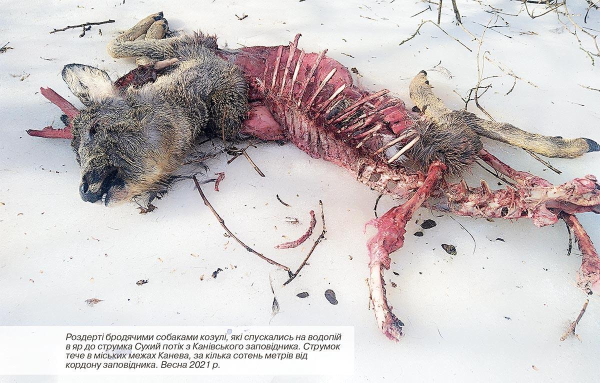 Справжнім шокінгом наприкінці цієї зими стали пирування бродячих собак, зокрема, на Черкащині, які завдали величезних збитків поголів’ю козуль. Особливо постраждав знаменитий Канівський природний заповідник.