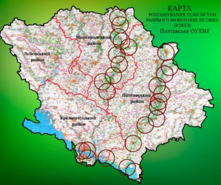 На базі трьох лісогосподарських підприємств Полтавського обласного управління лісового та мисливського господарства, а саме – ДП «Полтавський лісгосп», ДП «Кременчуцький лісгосп» та ДП «Миргородський лісгосп», працюють єдині наглядові центри з раннього виявлення лісових пожеж.