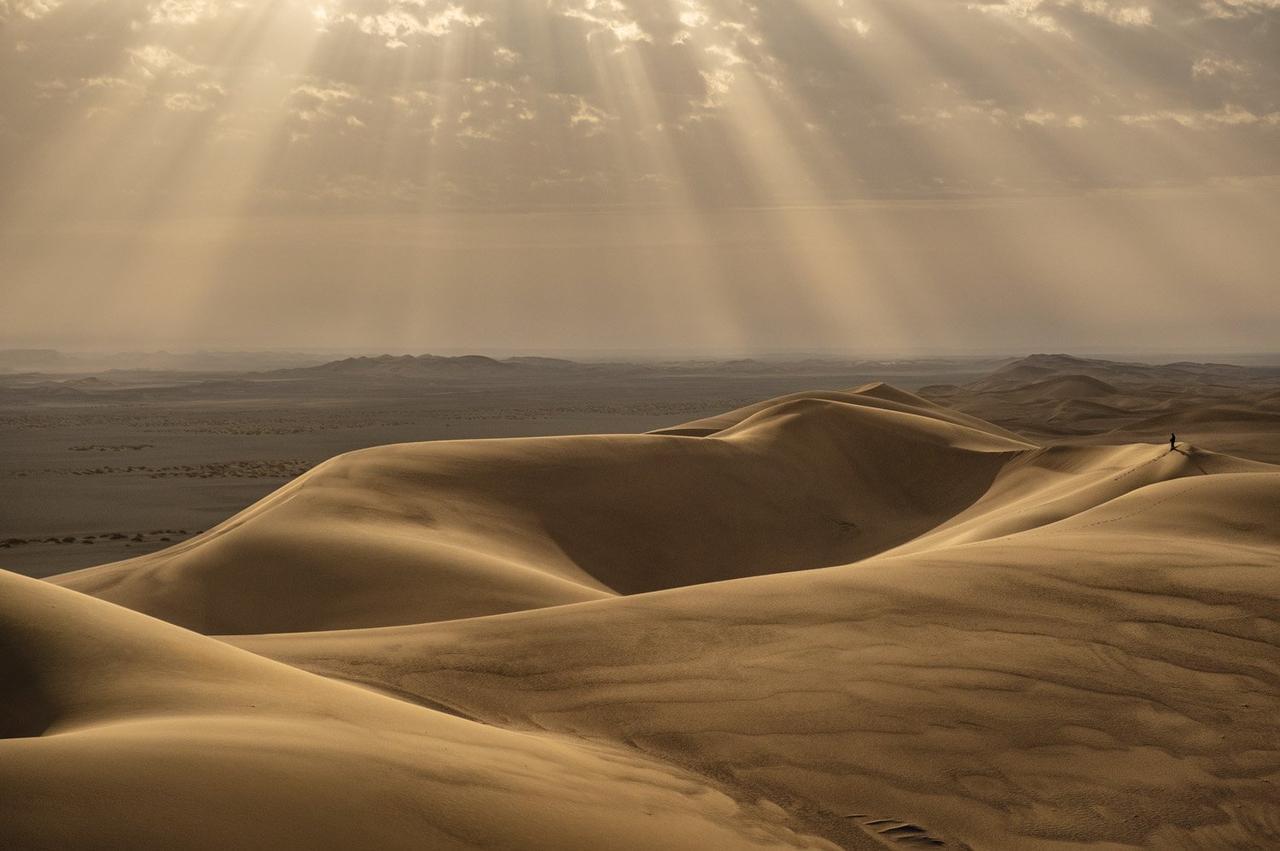 На фото: Путник идет по, вероятно, самому жаркому месту на Земле: песчано-солончаковой пустыне Деште-Лут. В 2014 году французские исследователи неофициально зафиксировали здесь температуру +61 °C в тени. По мере того, как Земля нагревается, все больше ее территорий могут стать похожими на Деште-Лут – непригодными для жизни человека. Фото: Матье Палей