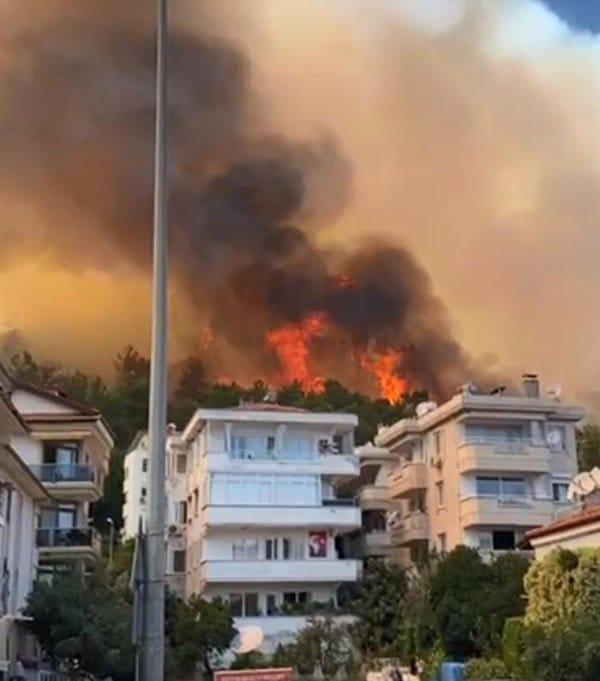 Видання TRT Haber пише, що в тому регіоні пожежа почалася з невідомої причини сьогодні вдень і поширилась на велику площу.