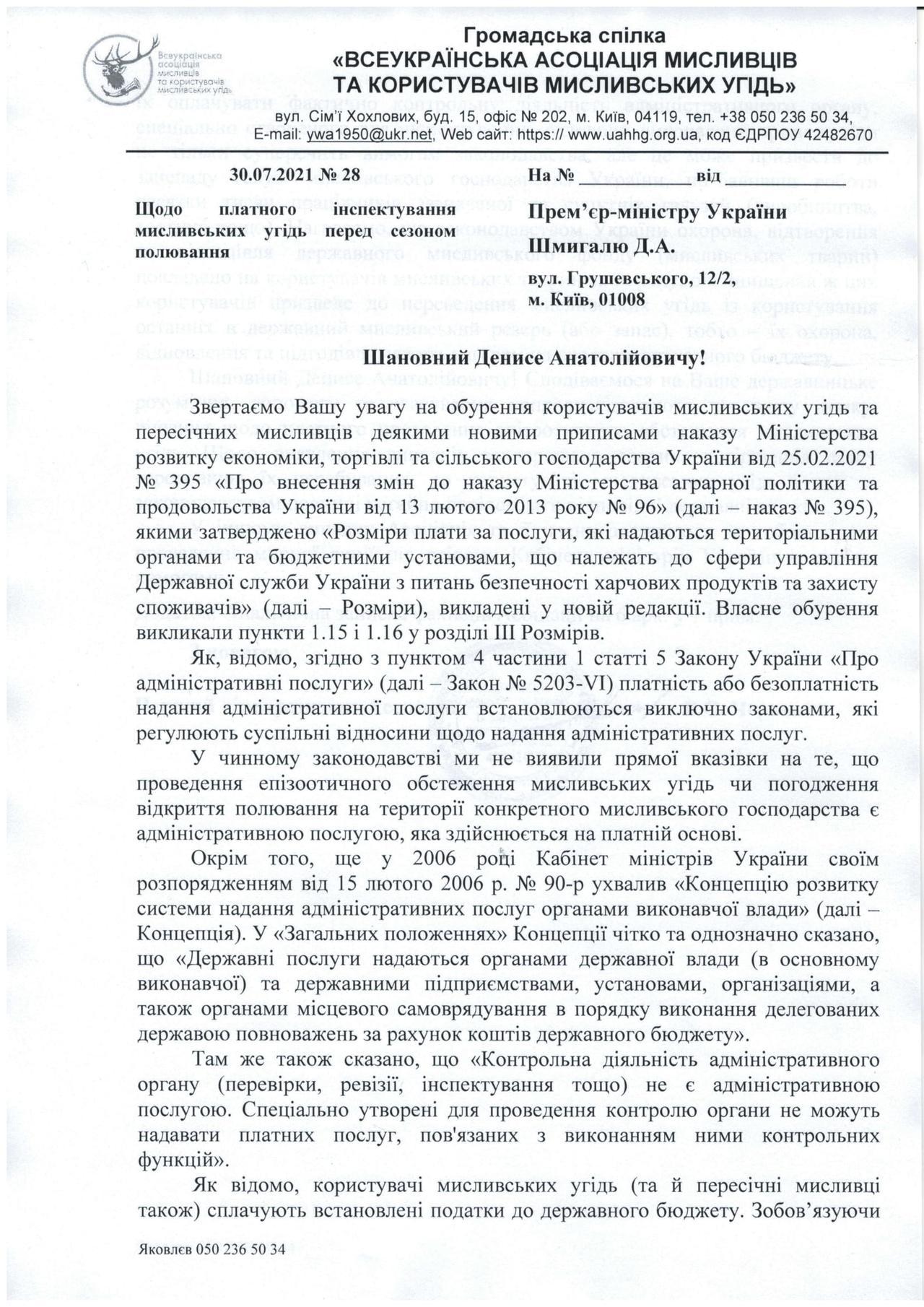 Всеукраїнська асоціація мисливців та користувачів мисливських угідь звертається до Кабміну з проханням втрутитися в ситуацію з самоуправством підконтрольних йому держорганів. У разі відсутності правового результату Асоціація та її члени розцінюватимуть ці дії як частину плану по умисному знищенню владою мисливської галузі і залишають за собою право на проведення протестних акцій.