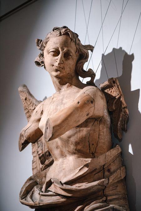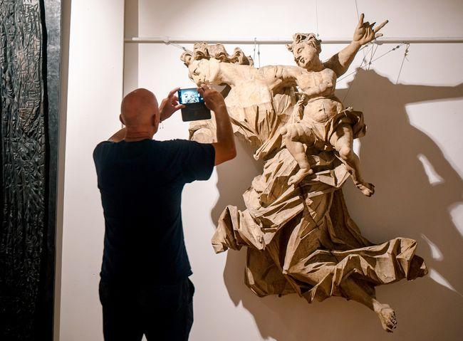 Нас пригласили в запасники Львовской национальной галереи, и когда мы приехали туда и увидели работы Франциска Олендзкого, то поняли, что они идеально подходят для нашей выставки. Олендзкий — замечательный позднебарокковый мастер. Его работы — это монументальные фигуры ангелов и аллегорических фигур, которые когда-то были частями алтарной зоны в костелах. Это такая супермонументальная экспрессивная пластика. Сдержанные, изысканные работы, которые поражают.