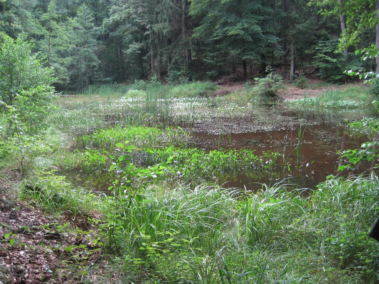 Продвижение влажных биотопов в государственном лесу целенаправленно осуществляется в течении последних 15 лет. Как пояснил главный лесничий Эрих Даум для увеличения числа и биоразнообразия водных объектов используется целый комплекс мер. «На всей территории Нижнего Марка (региональное подразделение BaySF ) снова и снова создавались пруды большего и меньшего размера, исторические дренажные канавы были закрыты, а бывшие пруды с карпом были преобразованы в естественные водно-болотные угодья».