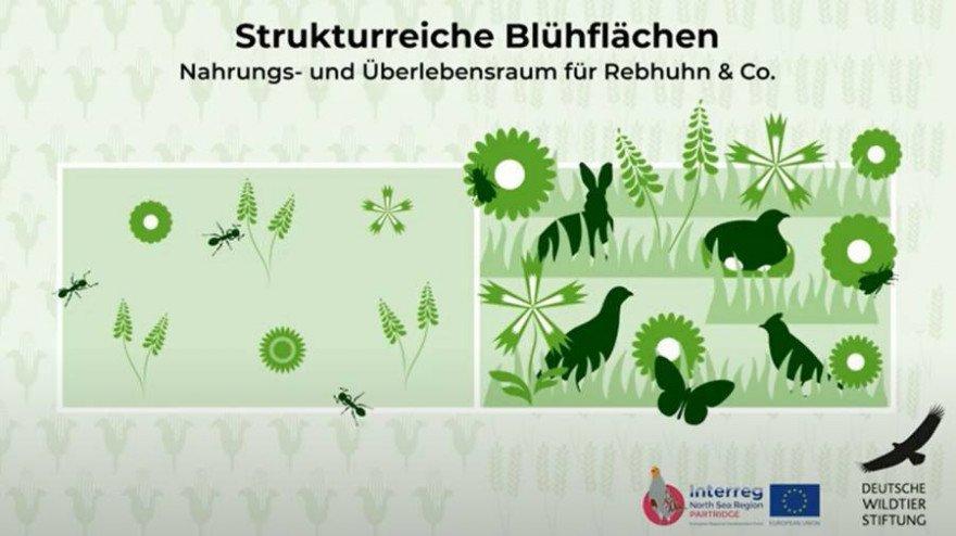 Чтобы создать миниатюрную среду обитания со всеми необходимыми элементами среды обитания на небольшой территории для куропаток, которым угрожает исчезновение, ученые из Департамента биологии сохранения в Геттингенском университете разработали принцип структурно богатых цветущих территорий.