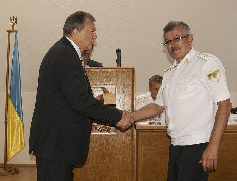 Голова Держлісагентства Юрій Болоховець вручив людині, яка очолювала лісову галузь України 15 років ( 1987 – 2002 р.р.), нині Почесному Голові ТЛУ Валерію Івановичу Самоплавському і Голові Держкомлісгоспу України у 1985-1986 роках (нині перший віце-президент Всеукраїнської асоціації мисливців і користувачів мисливських угідь) Віктору Червоному.