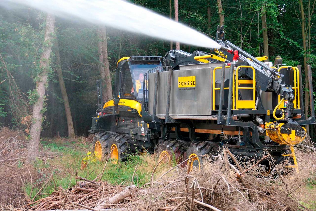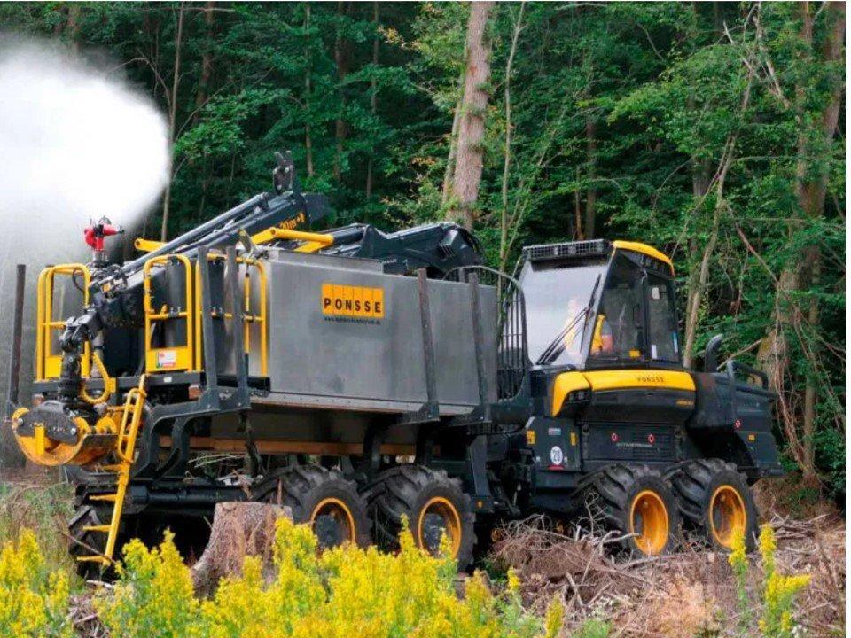Финский производитель лесозаготовительных машин Ponsse предложил Firefighter представить, как это может выглядеть. На стандартные лесозаготовительные машины можно поставить установку пожаротушения, состоящую из бака с насосом и струйной трубкой, и таким образом легко преодолевать пересеченную местность.