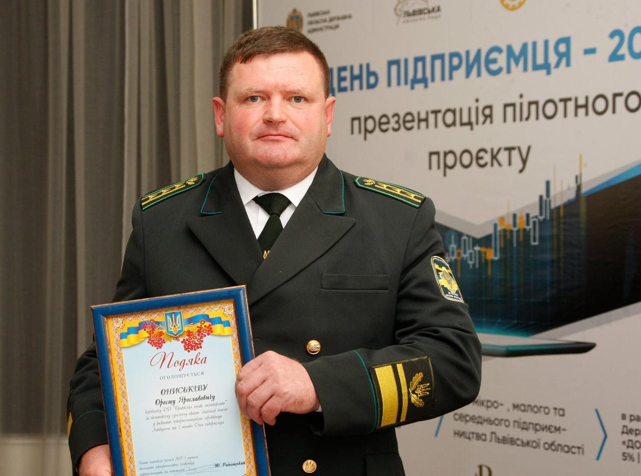 Урочистості з нагоди Дня підприємця відбулися і в приміщенні Головного управління Державної податкової служби України у Львівській області. Тут Подяку нашому лісгоспові за «злагоджену роботу колективу, що зміцнює загальний економічний потенціал держави та партнерські стосунки, співпрацю у правовому полі, вагомий внесок у наповнення бюджетів усіх рівнів» нашому директорові Оресту Ониськіву вручив начальник ГУ ДПС у Львівській області Ігор Комендат.