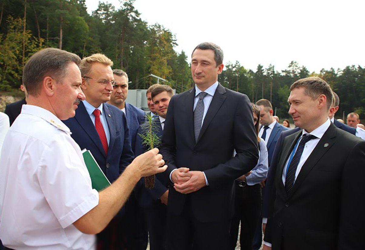 На знімку: начальник обласного управління лісового та мисливського господарства Анатолій Дейнека, міський голова Львова Андрій Садовий, міністр розвитку громад та територій України Олексій Чернишов і голова ОДА Максим Козицький.