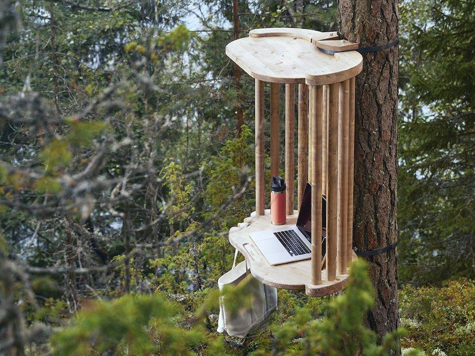 Каждая деталь станций отражает их локальность. Они произведены местной компанией Upwood, а в их разработке участвовали студенты Института дизайна и изобразительных искусств Университета прикладных наук LAB. Материалом стала финская ель, чья прочная древесина издавна ценится финнами. Рабочие станции легко устанавливаются и демонтируются с деревьев, не причиняя им вреда.