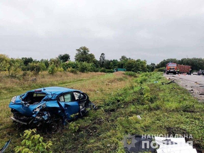 Слідчо-оперативна група на місці події попередньо встановила, що водій автомобіля «Renault Megane», 22-річний житель села Плоске, колишнього Острозького району, не врахував дорожню обстановку та під час здійснення маневру обгону допустив зіткнення із вантажівкою «DAF», завантаженою деревиною.