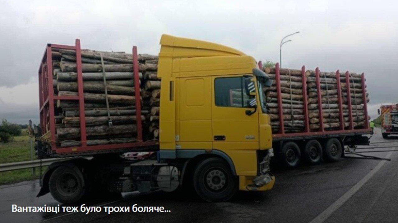 Водій автомобіля «Renault Megane», 22-річний житель села Плоске, колишнього Острозького району, не врахував дорожню обстановку та під час здійснення маневру обгону допустив зіткнення із вантажівкою «DAF», завантаженою деревиною.