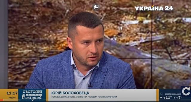 Голова Держлісагентства Юрій Болоховець в ефірі телеканалу Ukraine 24 про висадження нових дерев в рамках програми «Зелена країна», незаконну рубку та закон про ринок деревини.