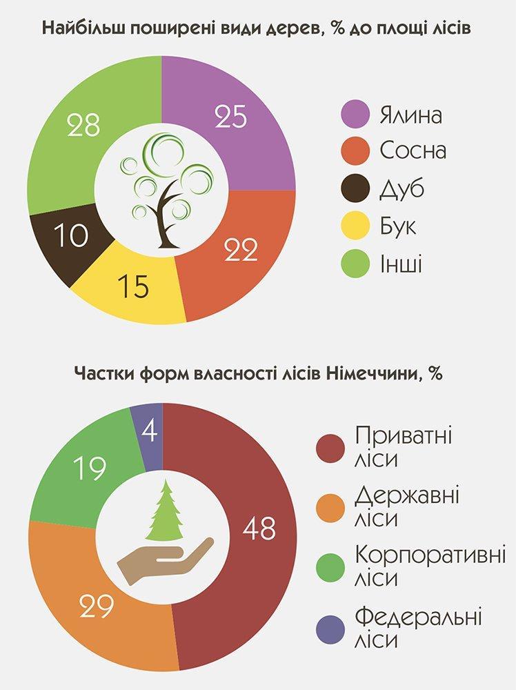 За даними останньої Федеральної інвентаризації лісів, їх площа в Німеччині становить близько 11,4 млн га або майже 32% території країни. Німецькі ліси – це цінні екосистеми, запаси вуглецю, зони відпочинку і важливі постачальники сировини. Вони управляються відповідно до перевіреного часом комплексного принципу стійкого і багатофункціонального лісового господарства. Запаси деревини становлять близько 336 куб. м на гектар – такі показники досягнуті з початку використання регульованого лісового господарства.