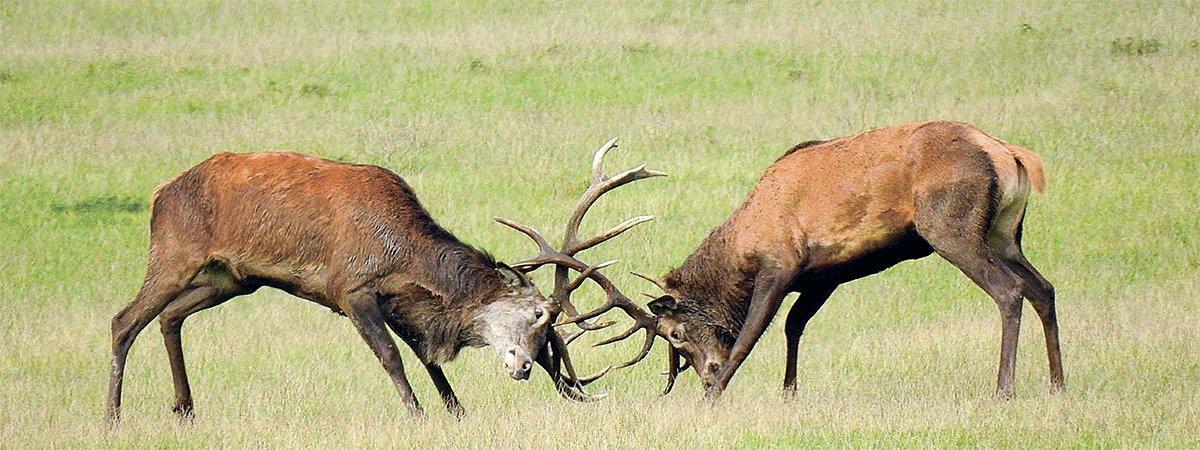 Найцікавіше слухати двобій двох «ветеранів». Це могутні олені вагою від 200 кілограмів, із широкими розлогими рогами. Інколи чути, як олені «фехтують» ними та звуки ударів, хрипіння, неймовірне напруження сталевих м’язів. Такі поєдинки можуть тривати годину чи дві. Потім місце двобою, дійсно, вказує, що це бились два титани. Вибита до піску трава, понівечені молоді деревця та гілки, що олені ламали своїми тілами у ражі битви, сліди бійців, які ладні не поступитись ані на крок. Могутність та велич. Але, на жаль, такі битви відбуваються не часто.