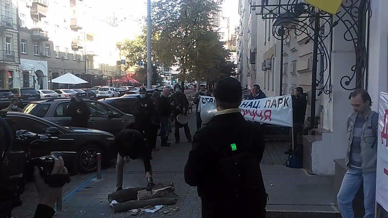 Экологи с бензопилой и топорами устроили протест в центре Киева. Фото, видео