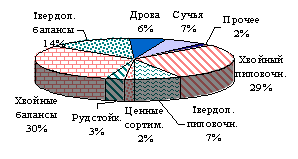 Рис.6. Структура заготовок по видам рубок | Рис. 7. Сортиментная структура заготовленной древесины |