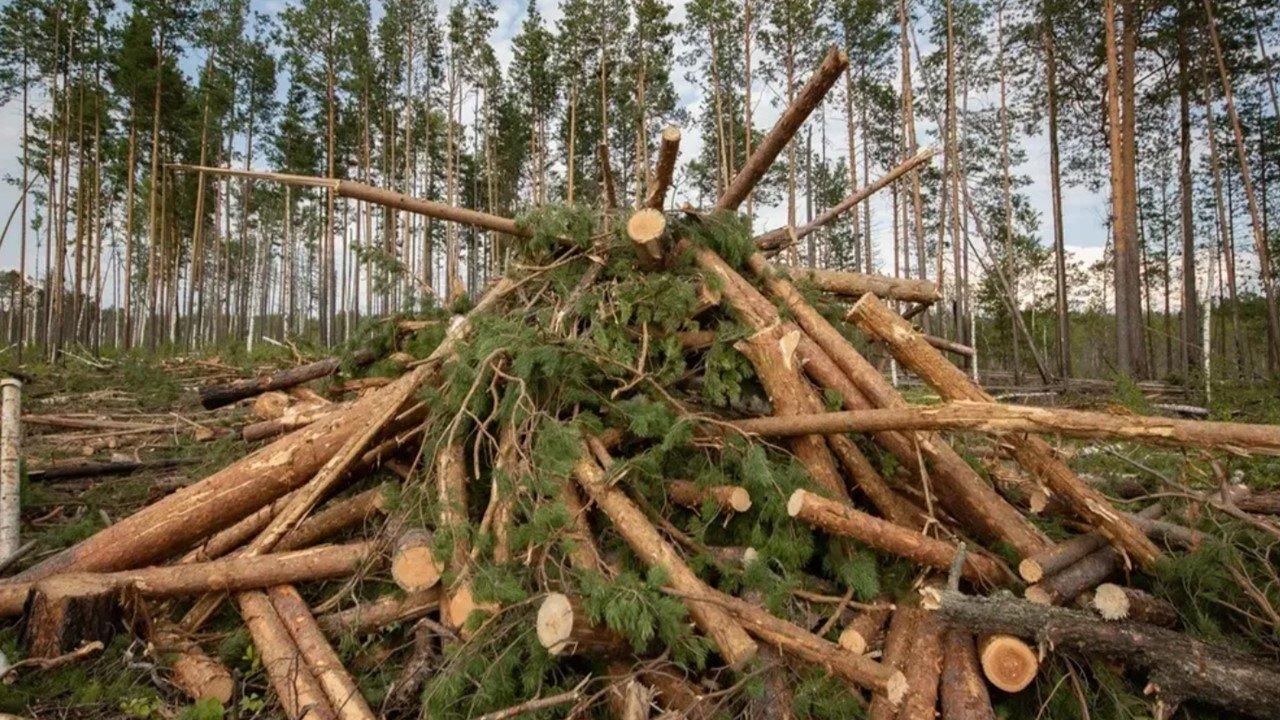 Древесина, заготовленная под видом санитарных рубок в Карегодском заказнике. Фото: Александр Сакалов / ТВ2, для «Новой»